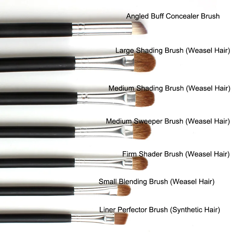 подбор материалов – существуют кисти из натурального и искусственного ворса. Натуральный ворс мягче, прозрачнее наносит продукт и лучше его растушевывает, чаще используется для сухих продуктов.
