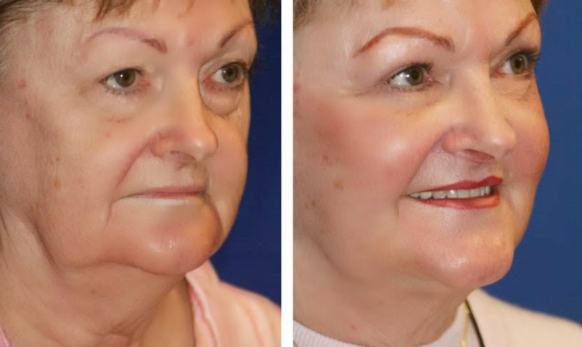 В результате, заметно подтягиваются «брыли» на лице, приподнимаются брови, носогубные складки становятся менее выражеными. Кожа становится более упругой на ощупь, выравнивается цвет лица.