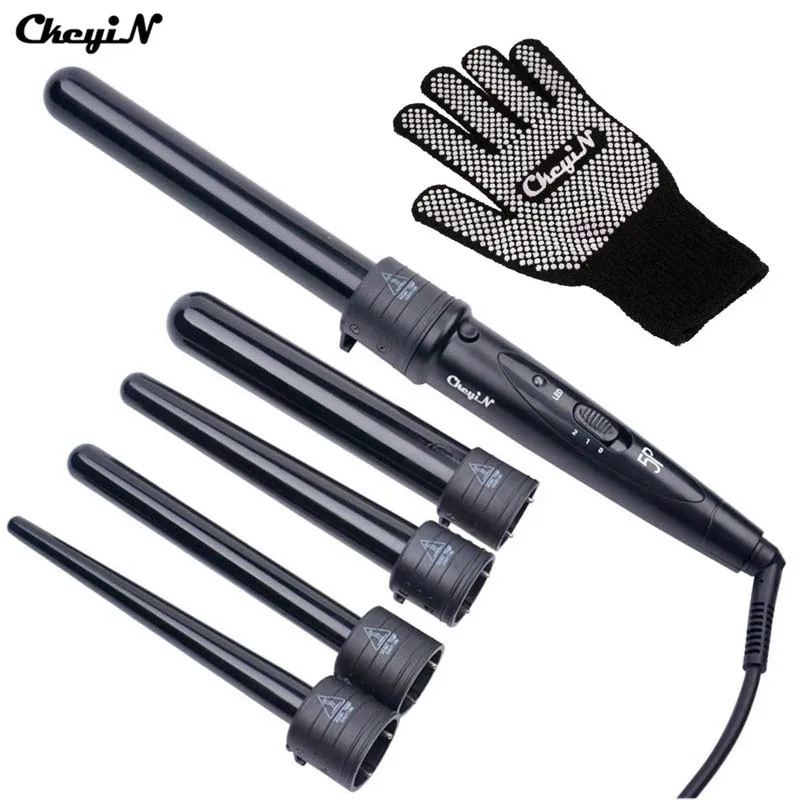 Плойка для завивки волос Pro 5-в-1 с перчаткой, плойка с насадками для укладки волос
